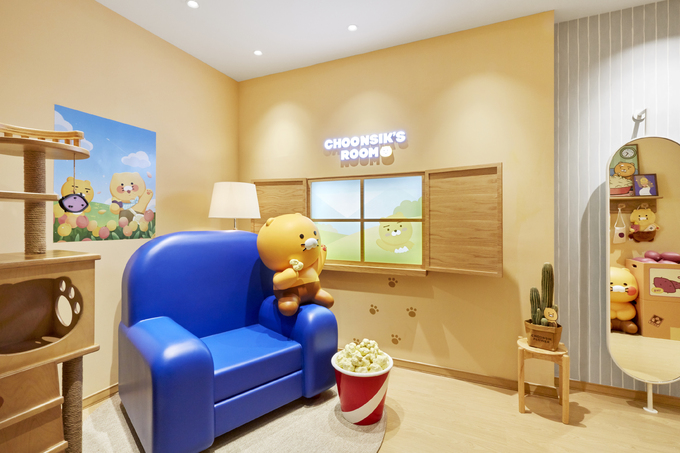 이번 테마룸은 ‘춘식이의 방’으로 라이언이 길에서 데려와 룸메이트가 된 고양이 ‘춘식이’의 캐릭터 상품들로 꾸며졌다. 공간의 경우 춘식이가 출연한 숏툰의 배경을 차용해 꾸며 집순이인 춘식이의 공간에 실제로 온 듯한 느낌을 준다.