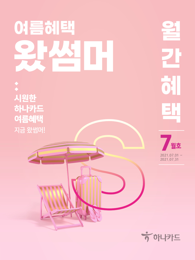 9일 카드업계에 따르면 하나카드는 7월에 진행되는 대표 이벤트를 모은 ‘월간혜택 7월호’를 지난 6일 발간했다. 매월 트렌디한 혜택을 선보이는 ‘요즘 혜택’에서는 호캉스, 레저에 집중한 할인 혜택을 선보인다.