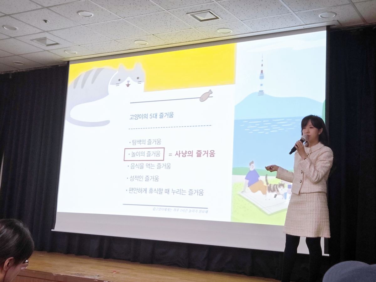 수도권은 물론 대전과 충남 천안 등 지방에서 상경한 고양이 집사 등 약 80명 참가자가 집결한 가운데 김효진 24시센트럴동물메디컬센터 원장의 ‘고양이 삶의 질을 높여주는 영양과 환경 풍부화’ 강연이 시작됐다. 건국대 수의과대 겸임교수이자 반려인능력시험 출제위원인 그는 고양이의 건강한 식습관을 위해 집사가 알아야할 정보를 전달했다.