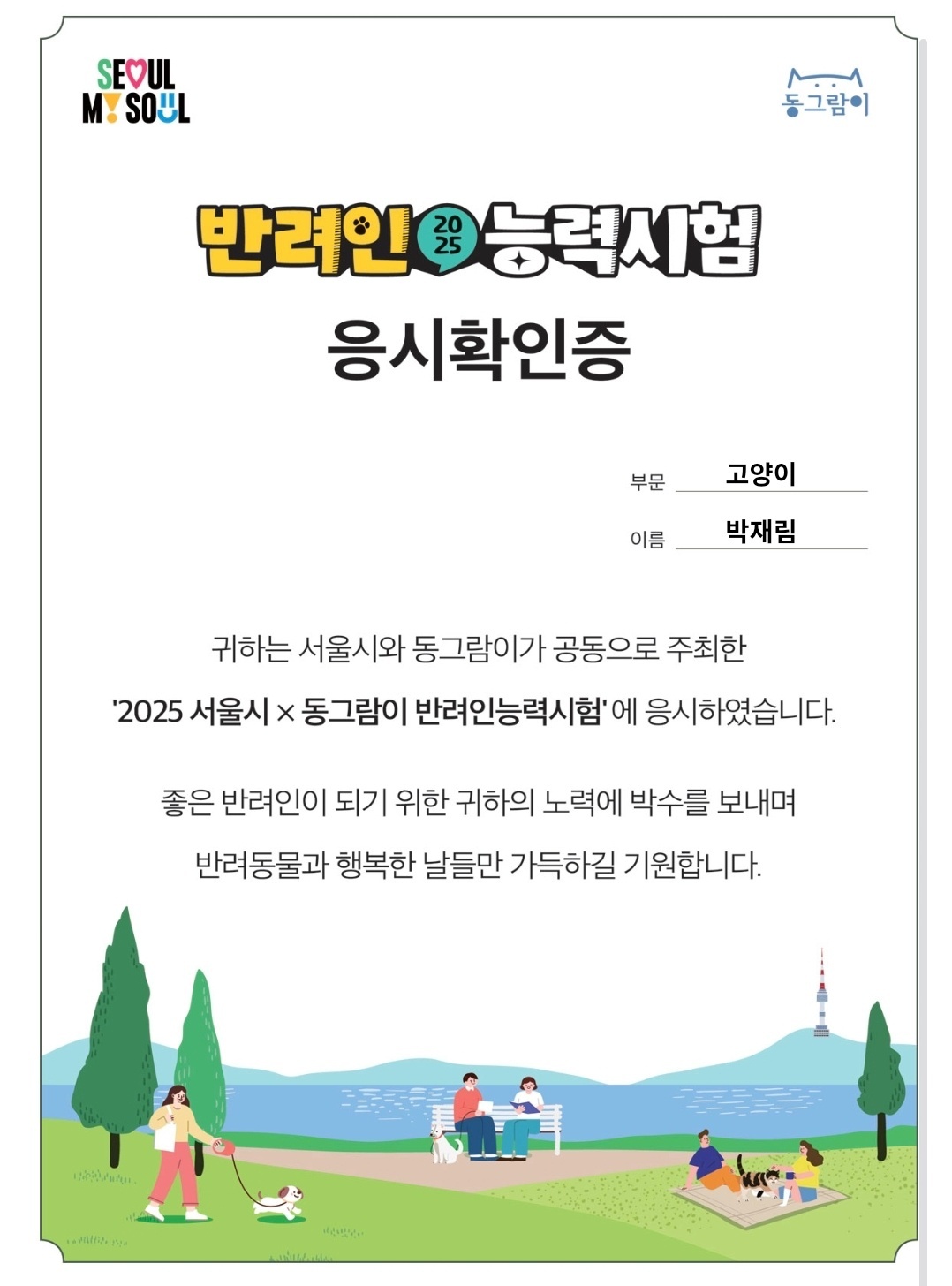 2026학년도 대학수학능력시험을 나흘 앞둔 지난 9일. 반려인능력시험의 고득점자들이 서울시립미술관으로 집결했다. 동물전문채널 동그람이와 서울시가 공동주최, 지난 9월 7일 치러진 반려인능력시험의 후속 프로그램으로 오프라인 세미나 ‘멍냥연수원’이 열린 것. 주최 측은 반려인능력시험 당시 오프라인 세미나 참가를 신청한 응시자 중 취득 점수를 기준으로 강아지 영역 상위 150명, 고양이 영역 100명을 대상으로 이번 세미나를 개최했다.