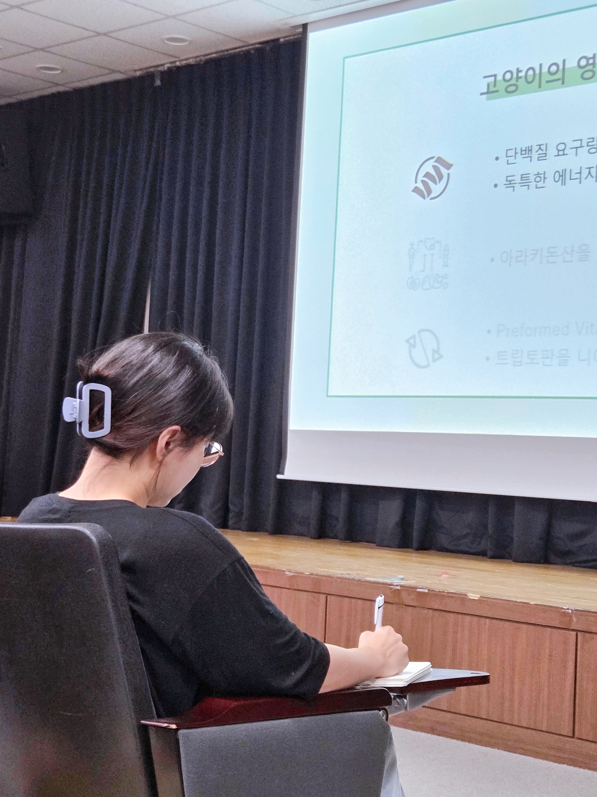 ◆ “고양이 삶의 질 올리는 올바른 식습관”… 참가자들 ‘필기 삼매경’