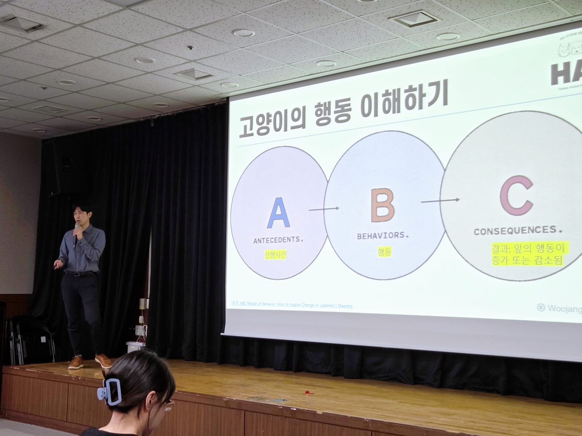 이 원장은 사전에 받은 참가자들의 질문들을 바탕으로 고양이들의 문제행동을 짚고 해결 방안을 추천했다. 그러면서 “고양이의 행동을 차단하거나 ‘안돼’라고 제지 하는 것에 그치는 건 좋은 해결 방법이 아니다”라며 “반려묘의 각자의 특성, 문제 행동을 하는 시간과 장소, 감정의 근원 등을 세심하게 파악하는 게 우선이다. 그 뒤 반려묘가 해당 행동을 하기 전에 보호자가 선행적으로 변화를 주고 대체 행동을 교육해야 한다”고 강조했다.