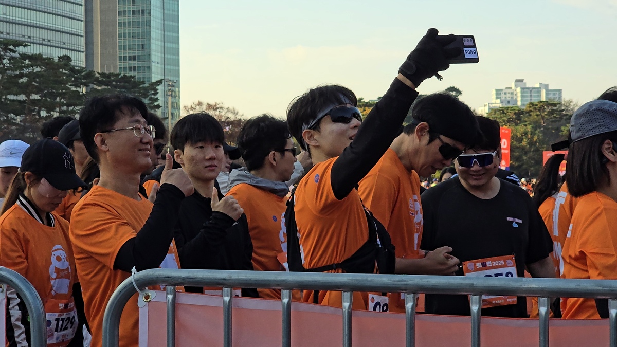 확실히 ‘러닝’이 요즘 대세가 됐다는 것을 느낄 수 있었다. 아침 8시 무렵부터 여의도역 인근에는 지방이가 그려진 주황색 핏땀런 러닝 티셔츠를 입은 참가자들이 대회장을 향해 걸어가고 있었다. 공원에서는 지방이 조형물, 지방이 인형탈과 함께 기념사진을 찍는 참가자도 많았다.