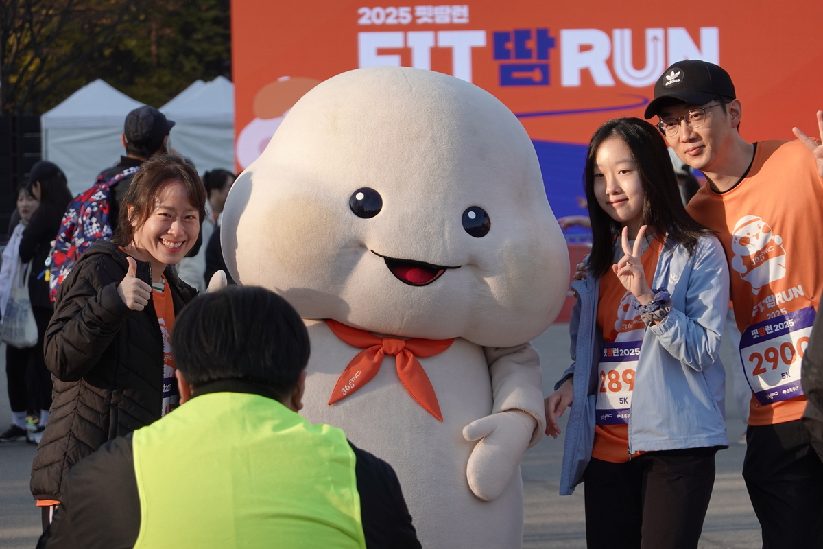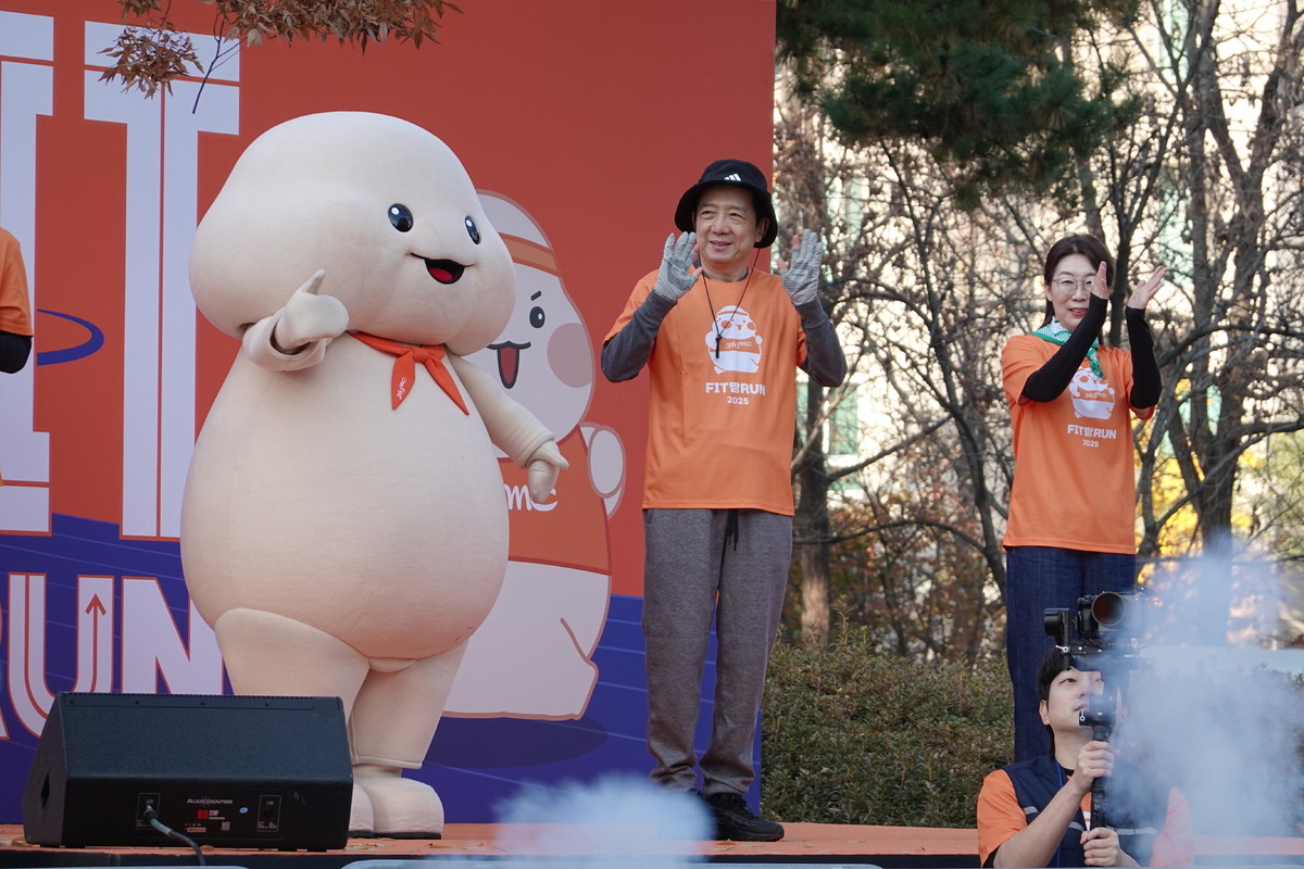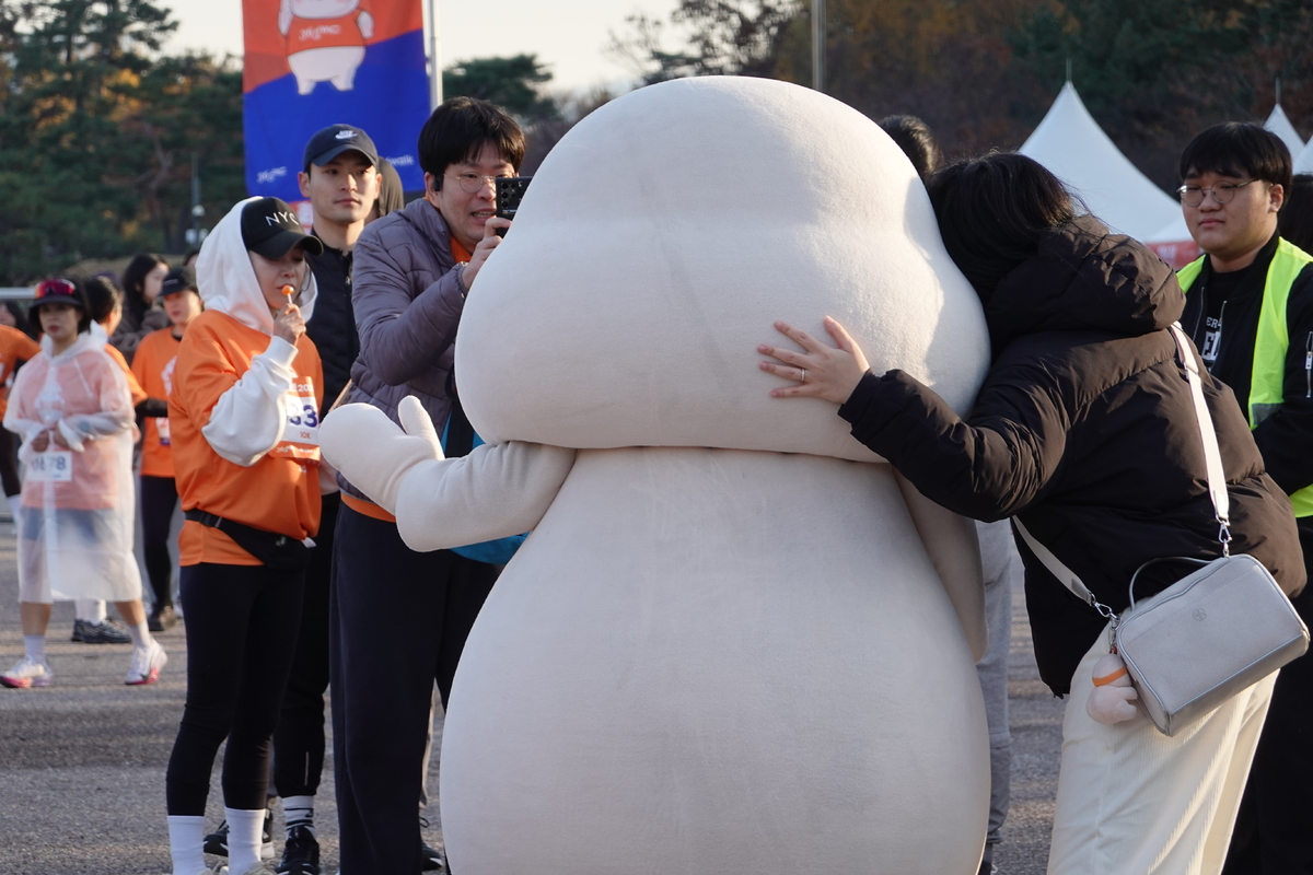 서울 여의도 문화의 마당에 거대한 지방이가 등장했다. 365mc의 아이콘 지방이는 이날 ‘핏땀런(FIT-땀-RUN)’ 기부 러닝에 나서는 러너들을 응원하기 위해 함께했다.