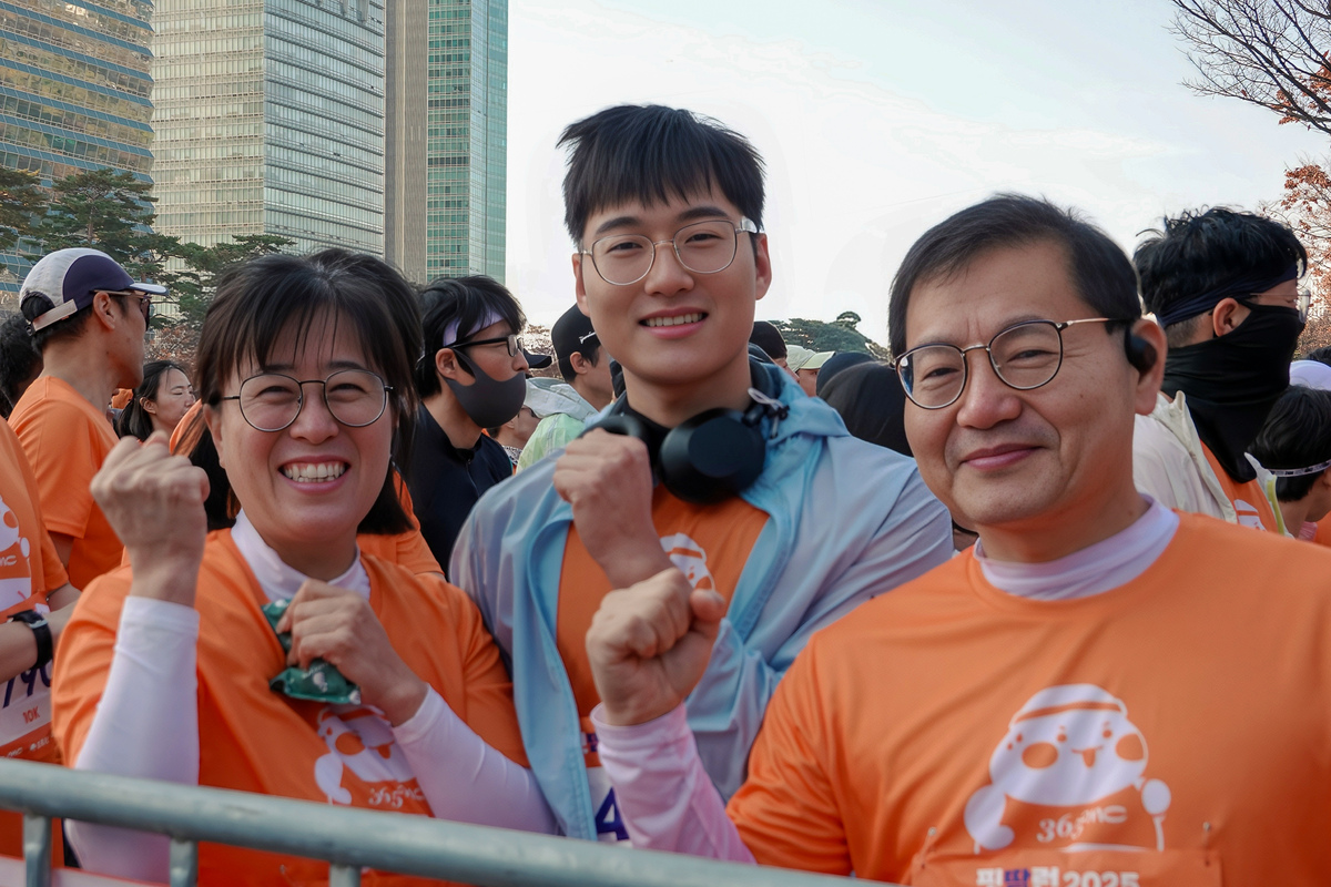 가족 구성원이 다함께 달리기 대회에 참가하며 추억 남기기에 나서기도 했다. 서울 동대문에서 온 김영희 씨(57)는 평소 달리기를 즐기는 마니아다. 이번에는 따뜻한 마음을 나누기 위해 아내 류영은 씨, 아들 김상현 씨와 함께 참여했다. 김영희 씨는 “다함께 완주가 목표입니다, 파이팅”이라며 미소지었다.