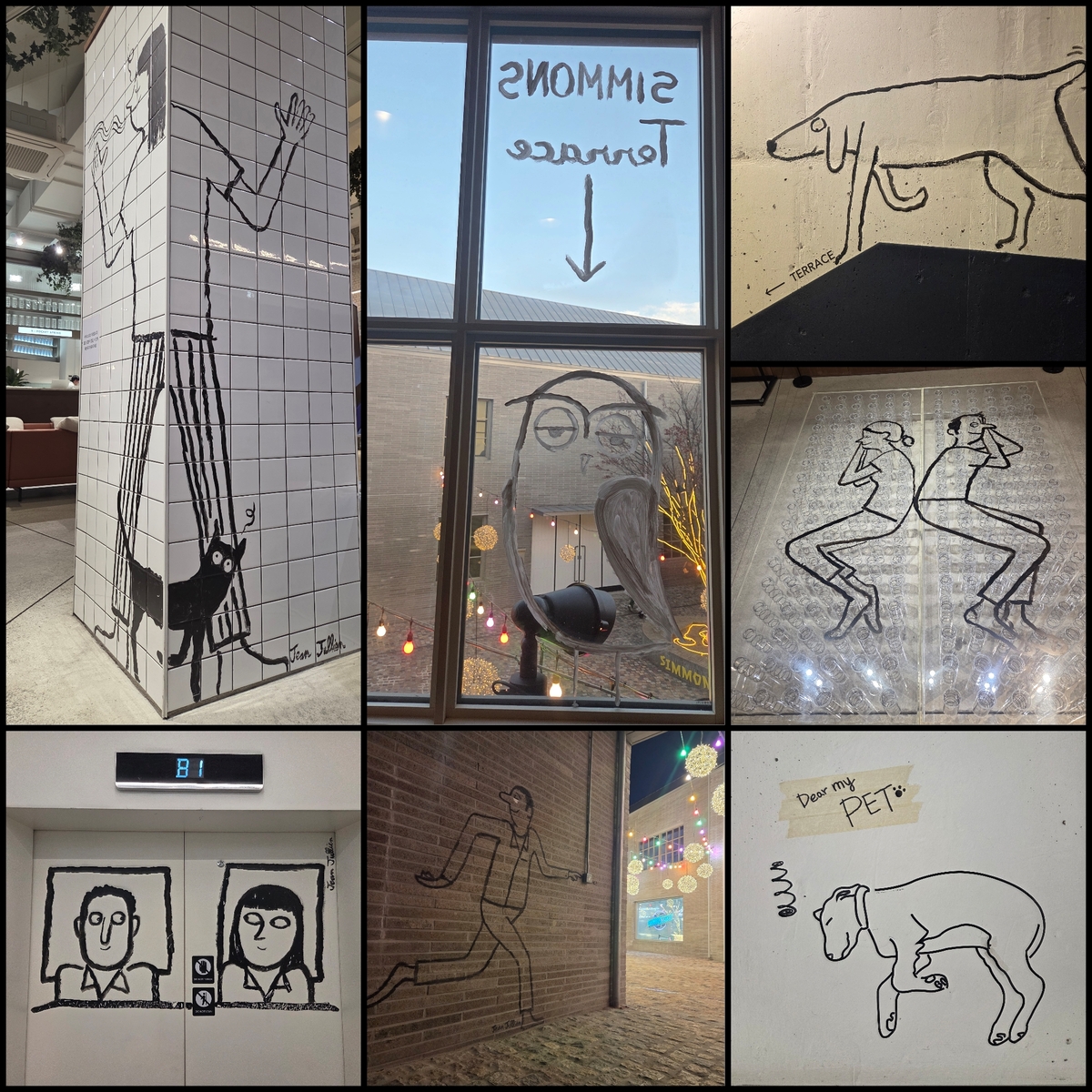 시몬스 테라스 곳곳에는 프랑스 출신의 세계적 비주얼 예술가 장 줄리앙(Jean Jullien)의 손길이 묻어있다. 시몬스 테라스 오픈 당시 이곳을 방문한 그가 라이브 페인팅 퍼포먼스로 남긴 작품들이다. 총 12개 작품이 숨어(?) 있는데 그 중에는 강아지, 고양이, 부엉이처럼 동물 그림도 있다. 시몬스 관계자는 “방문객들 사이에서는 특별한 포토존으로 유명하다”고 소개했다.