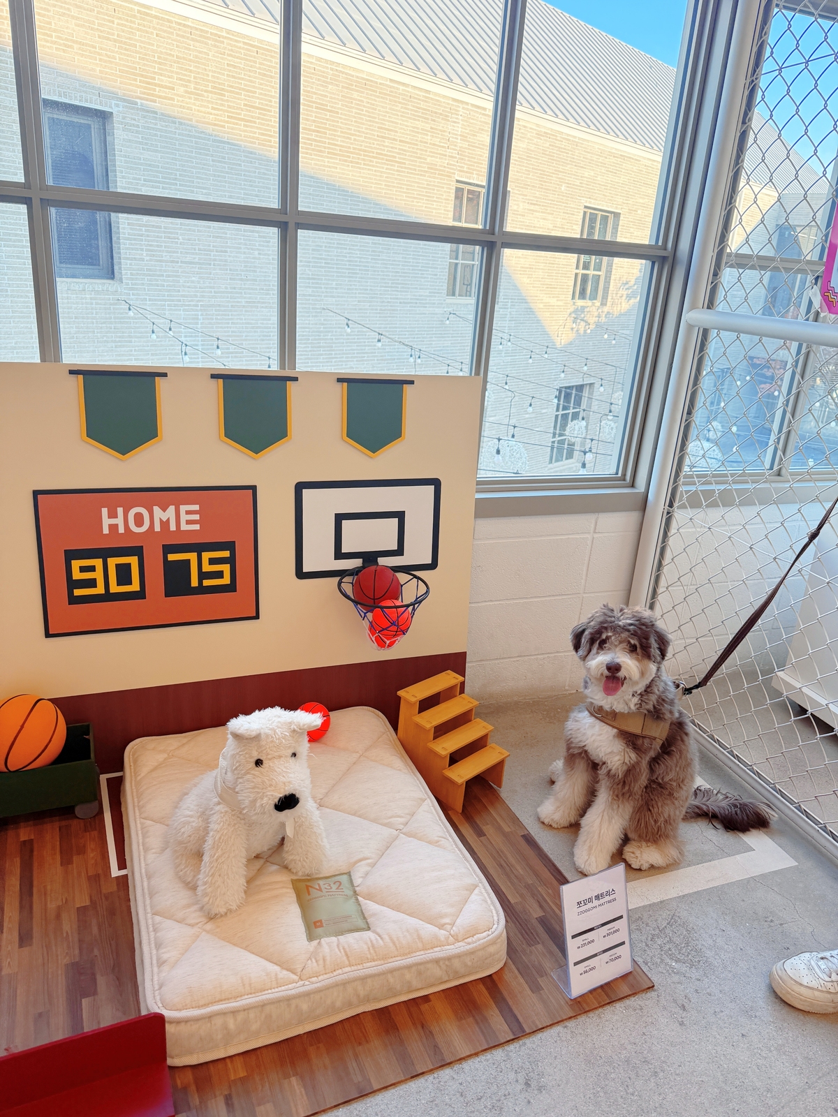 테라스 내 박물관 헤리티지엘리에서 큐레이터로 활동하는 장하원 시몬스 문화사업팀 사원은 “대형견도 눈치 보지 않고 즐길 수 있는 곳이라 대형견 커뮤니티의 오프라인 모임 장소가 된 것으로 안다. SNS상에서 유명한 ‘멍플루언서’도 종종 방문한다. 귀여운 강아지 방문객들은 우리 직원들의 복지”라고 웃으며 “강아지들이 본인 침대인 걸 아는지 자연스럽게 쪼꼬미에 눕는다. 눕자마자 곧장 잠든 강아지도 있었다”고 말했다.