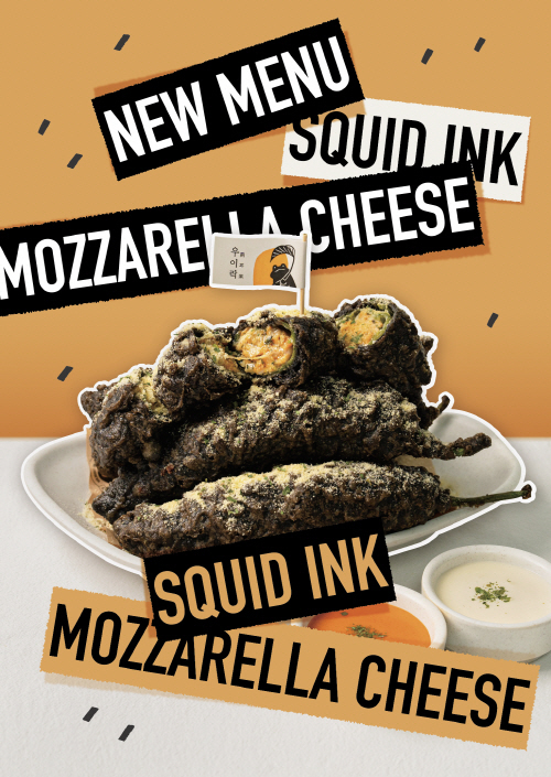 전 전문 프랜차이즈인 우이락은 자사 브랜드의 ‘고추튀김’을 업그레이드한 먹물 치즈고추튀김을 출시했다. 오징어 먹물을 첨가해 검은 튀김을 두른 고추튀김 위에 콘소메 시즈닝을 더해 고소한 풍미를 더했다는 것이 브랜드 측 설명이다.