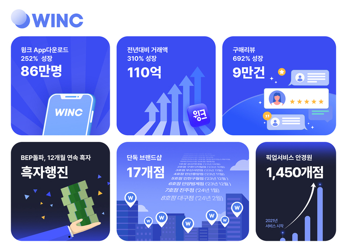 2023년 11월 기준 픽업 서비스를 위해 파트너십을 맺은 제휴 가맹 안경원 도 1,450개를 돌파했다. 이는 처음 픽업 서비스를 제공했던 2021년 5월 대비 약 28배 증가된 수치로 지역 소상공인들과 지속적인 상생을 이어 나가고 있는 것을 의미한다. 현재 윙크컴퍼니는 매출은 2023년 1분기를 기점으로 손익 분기점을 넘어 12개월 연속 흑자 행진을 기록하며 국내 1위 최대 규모 뷰티렌즈 커머스 환경을 구축하고 있다.