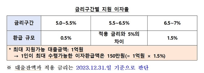 금융위는 이 제도가 올 한해 진행하는 것으로, 이달 31일 4분기 신청을 마감한다고 설명했다. 3분기 신청 건은 내년 1월9일에서 16일 사이에 환급될 예정이다. 최대 지원 가능한 대출금액은 1억원으로, 1인이 최대 수령 가능한 이자 환급액은 150만원이다.