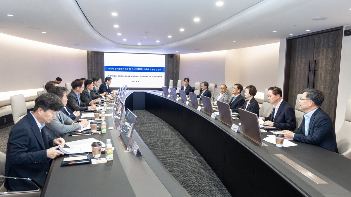 이날 오전 서울 중구 대한항공 서소문사옥에서 열린 간담회는 류경표 한진칼 부회장, 우기홍 대한항공 부회장을 포함한 한진칼 윤리경영위원회 위원 7명이 참석했다. 이와 함께 아시아나항공, 에어부산, 에어서울, 아시아나IDT, 아시아나에어포트, 아시아나세이버 등 주요계열사 경영진 6명이 참여해 의견을 모았다.