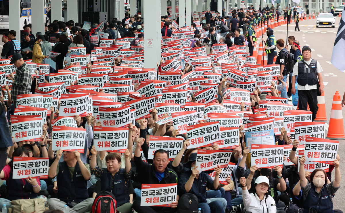 전국공항노동자연대는 이날 오후 2시 김포공항 국내선 3번 출구 인근에서 총파업대회를 개최한다. 이에 앞서 오전 9시 30분 인천공항 1터미널 3층, 오전 10시 김포공항 국내선 3번 출구에서 각각 사전대회를 연다.