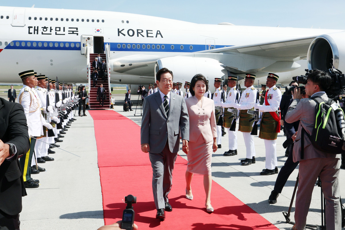 이재명 대통령이 26일 말레이시아 쿠알라룸푸르에 도착해 1박 2일간의 아세안(ASEAN) 정상회의 일정에 돌입했다. 이 대통령은 도착 직후 첫 일정으로 현지 동포 초청 만찬 간담회를 열어 교민들을 격려했다.
