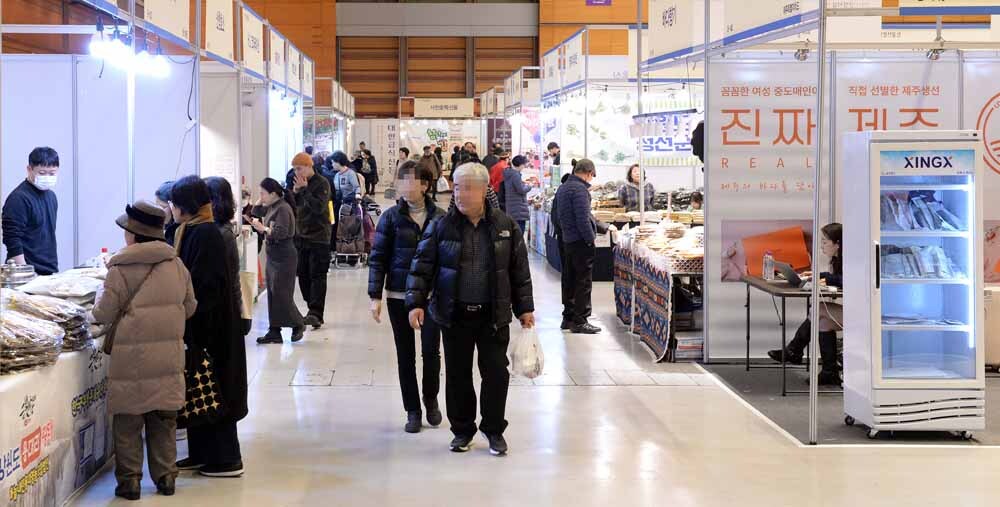 10일 서울 강남구 코엑스에서 열린 '설맞이 명절선물전'에서 관람객들이 부스를 돌아보고 있다.