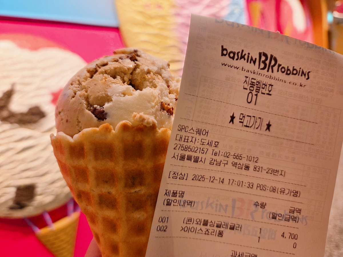 매장에서 아이스크림을 먹으면서 일하는 알바생들을 보면서 떠오른 또 하나의 추억. 대학 시절 배스킨라빈스에서 알바를 한 적이 있다. 대학로나 종로, 명동 같은 번화가의 큰 매장은 아니었고 약수동의 작은 매장이어서 동네 단골 손님이 많았다. 20대 젊은 손님 말고도 40대 이상 중장년의 손님들도 많이 방문했다. 뭐가 맛있냐고 추천해달라는 어르신께 그린티(녹차), 월넛(호두)을 주로 말씀드렸는데, 지금의 나라면 아이스 죠리퐁도 추천해드릴 것 같다.
