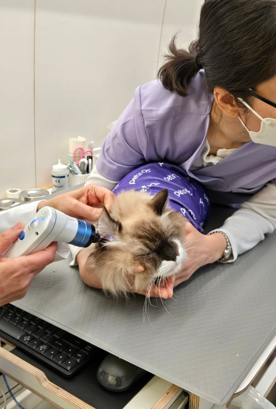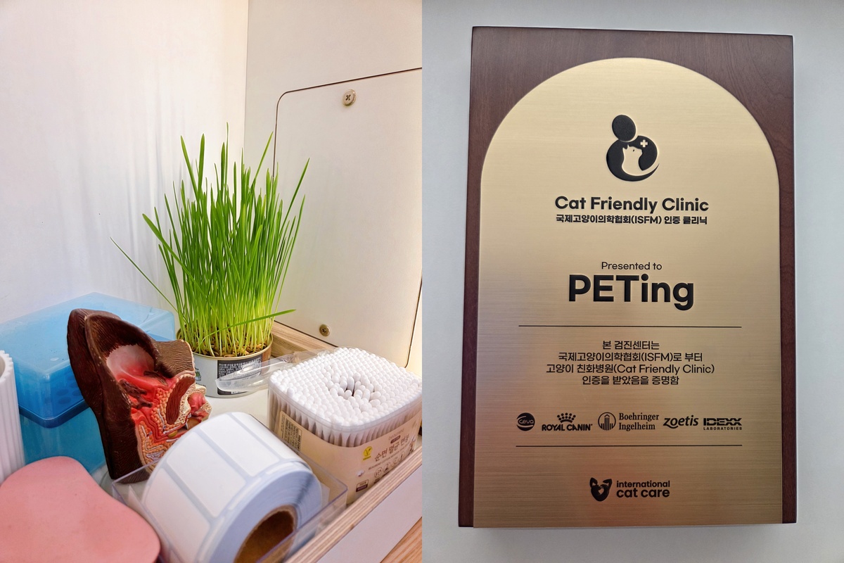 반려동물과 수의사가 다치지 않고 안전하게 검사를 받을 수 있는 펫팅만의 접착식 담요, 고양이의 정신 안정을 위한 캣닙 화분, 빛에 민감한 반려동물을 위해 밝기를 조절할 수 있는 조명, 계절에 맞춰 사용할 수 있는 온열매트와 에어컨 등 세심한 보조 물품도 인상적이었다. 국제고양이의학협회의 고양이친화병원 인증패가 걸려 있을 만 했다.