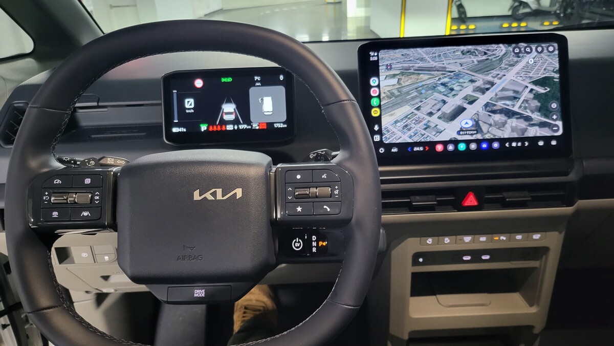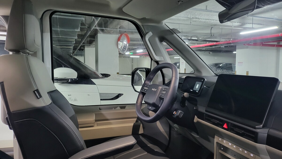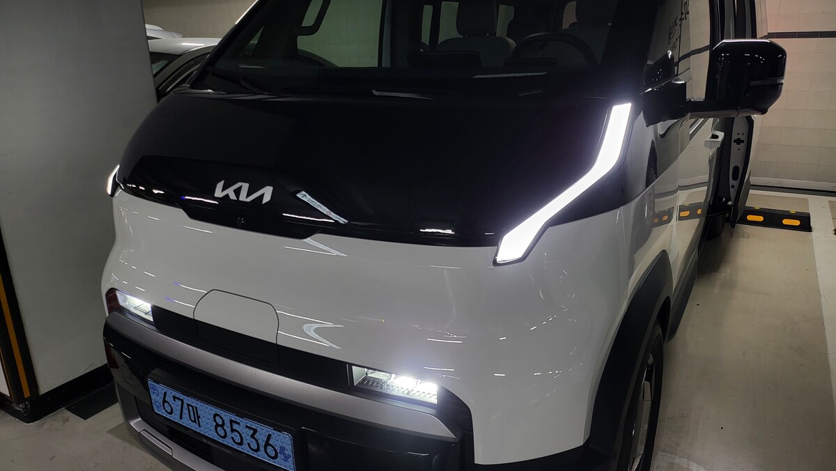 차체는 전장 4695mm, 전폭 1895mm, 전고 1905mm다. 휠베이스 2995mm가 실내 여유의 핵심이다. 외형은 밴에 가깝지만 비례는 전기차 플랫폼 특유의 짧은 오버행으로 정리됐다. 시야는 높고 보닛 끝이 멀지 않아 차폭 감이 의외로 빨리 잡힌다. 적당한 크기로 지하주차장 램프와 골목 코너에서 차체가 늦게 따라오는 느낌은 크지 않다.